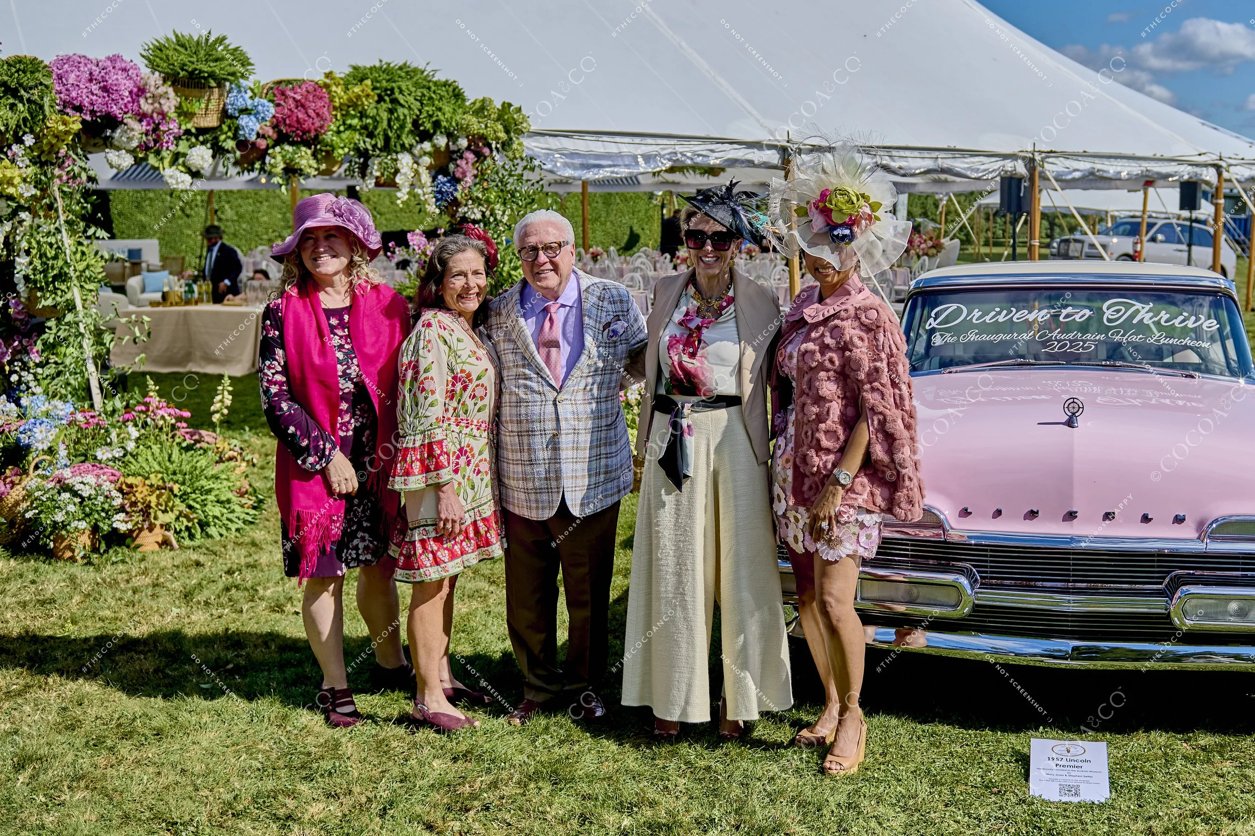 The Inaugural Hat Luncheon kicked off Audrain Concours Motor Week 2025 in unforgettable style. Held on the manicured lawns of Rough Point, guests arrived through opulent, flower-covered entrances with blue skies and clear ocean views. They posed beside pastel vintage cars, including the stunning 1957 Pink Lincoln Premier and 1954 Jade Austin Healey - perfectly complementing the theme, Driven to Thrive. Custom hats of every size and color, along with bold and vibrant floral dresses, turned the lawn into a sea of chic flair. Guests enjoyed an inspiring afternoon of food, conversation, and a powerful keynote from Dr. Doreen L. Wiggins. What a picture-perfect way to open Audrain Concours Motor Week!
